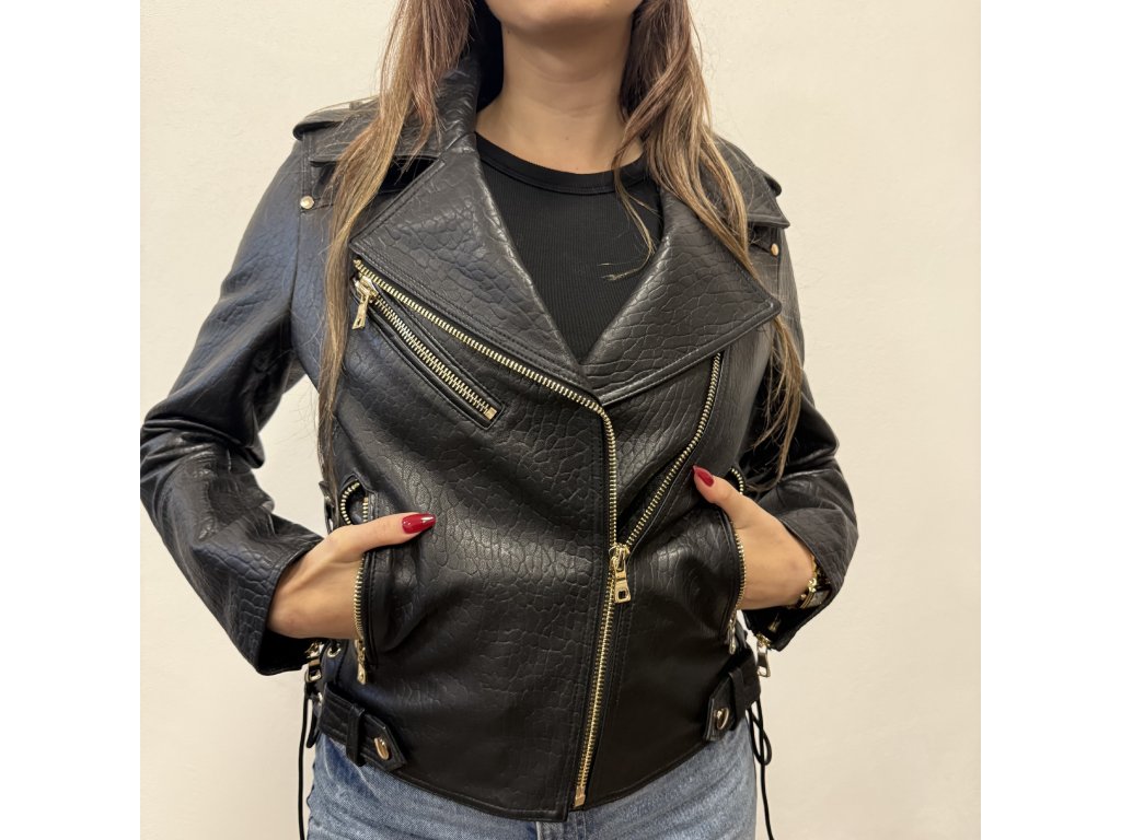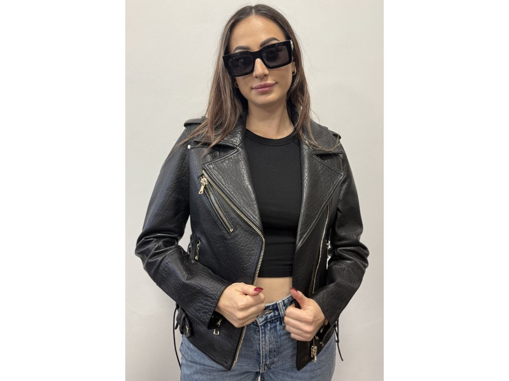 Má asymetrický zip typický pro křivák, což dodává bundě ikonický vzhled.