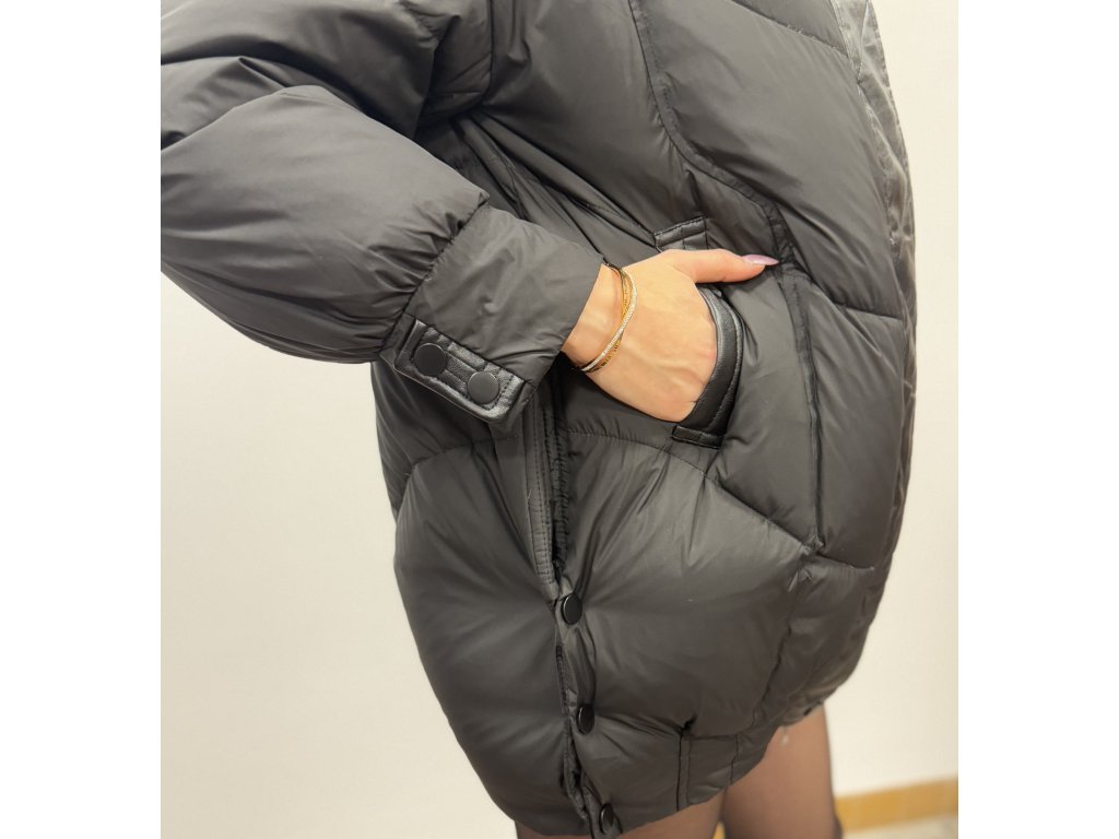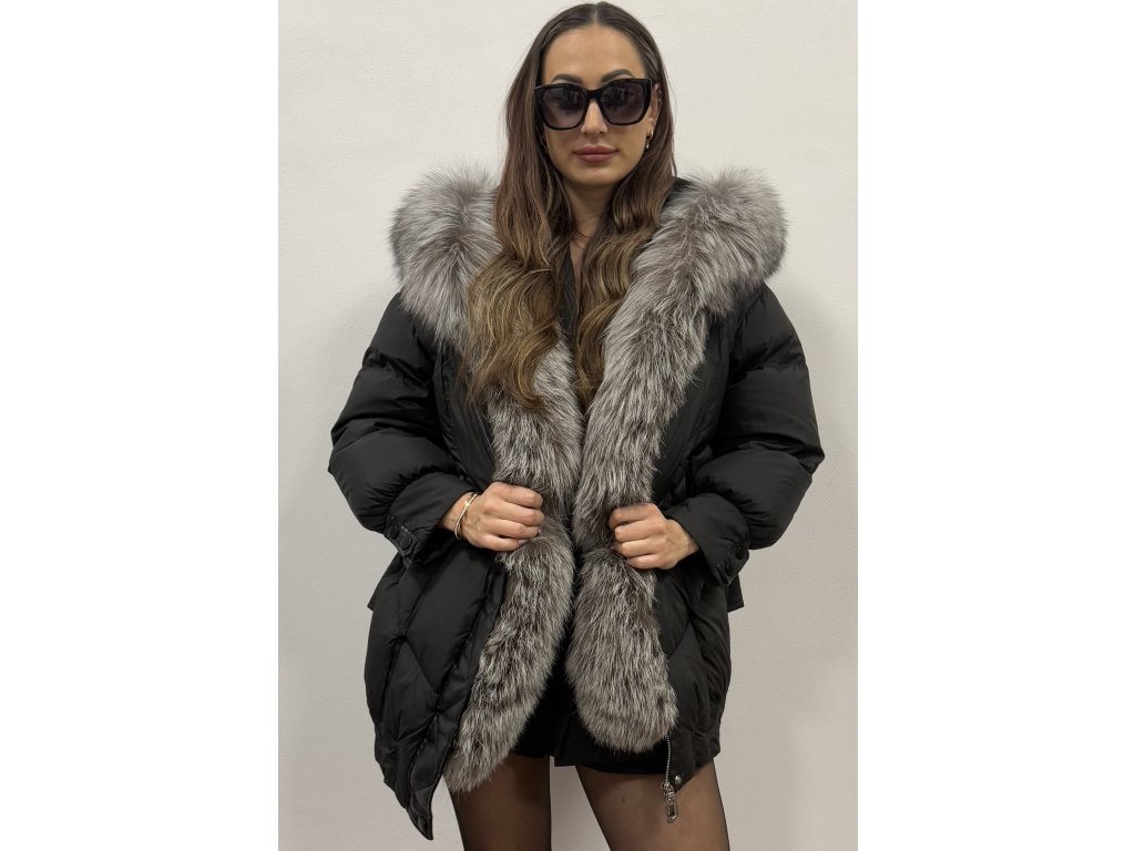 Tato péřová bunda s pravou liščí kožešinou kolem kapuce a předních lemů je dostupná ve třech elegantních barvách – bílé, černé a krémové. K dispozici je ve velikostech S, M a L. Bunda má dvě přední kapsy, kožené lemování na kapsách a okrajích lemu přispívá k lepší odolnosti a snadné údržbě. Bunda je navržena s bočními cvoky ve spodní části, díky kterým ji můžete nosit jako delší variantu nebo je zapnout a bundu přizpůsobit jako kratší model podle potřeby (viz foto).