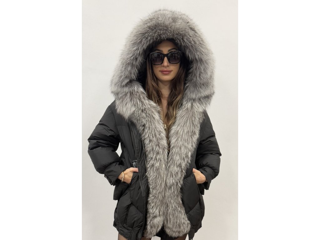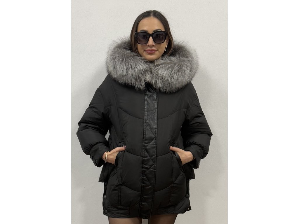Dámská zimní perová bunda s kapuci a liščí kožešinou