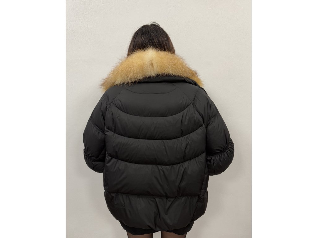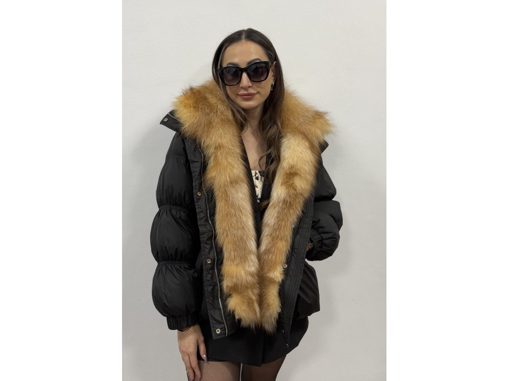 Kožešina na těchto bundách je odepínatelná, což umožňuje snadnou údržbu a možnost přizpůsobení vzhledu bundy. Dále lze kožešinu uvázat vepředu jako šálu, což dodává další variabilitu stylu a zajišťuje extra teplo kolem krku. Tento prvek dává uživateli možnost volby, zda ji nosit jako součást bundy, nebo ji úplně sundat pro jiný vzhled. Bunda má nadýchaný design s objemnými rukávy, které vytvářejí pohodlný a teplý vzhled. Zapínání je na zip i na cvoky.